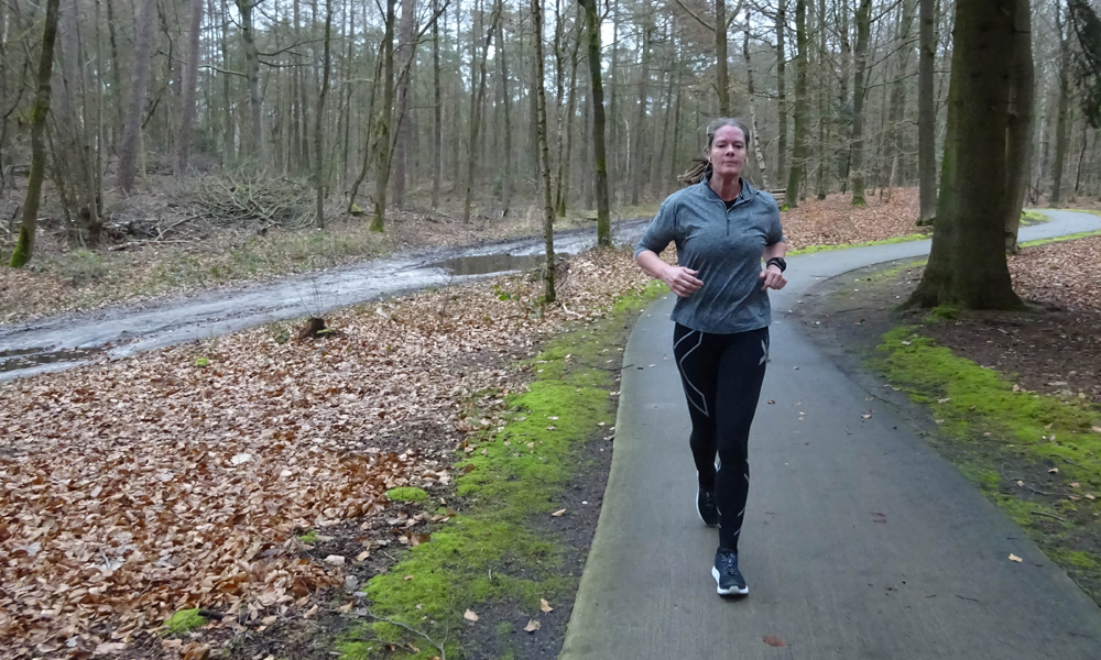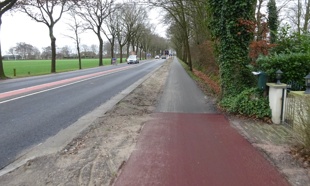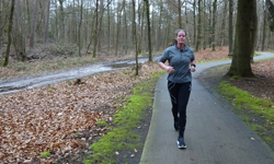Vandaag het laatste lesje van Evy!! Volgens de 2006 versie moet ik weer 30 minuten doen maar volgens de 2011 versie moet ik 32 minuten doen dus ik doe 32 minuten net zoals eergisteren. Dat moet gewoon weer lukken en is een mooie opstap naar meer en langer. Ik ga eerst met Fleur wandelen. De loopsheid lijkt op zijn retour dus volgende week ziet alles er weer heel anders uit als ik niet meer zo hoef op te letten. Dan kan ik ook weer meer wandelen want ik wandel nu veel met Fleur door de tuin. Eerst dus door het stille bos met haar en daarna op pad voor de laatste les. Dat gaat best aardig maar ik heb het weer bloedheet en ben knalrood als ik terug kom. Mijn gemiddelde is 6.42 min/km dus helemaal niet zo slecht. Nu kan ik gaan werken aan de cadans want die moet nog steeds omhoog. Gelukkig haal ik ook de 172 tijdens de loopjes maar het is gemiddeld nog te laag. Komt ook wel weer goed. De Clifton werken ook niet echt mee om nou lekker soepeltjes over de grond te dansen zullen we maar zeggen. Ik maak aan het einde nog een kiekje van het overharde pad met het fietspad ernaast waar ik zelf loop.