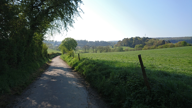 Veel te vroeg naar ons zin zijn we weer bij de parkeerplaats. Gaan we nog naar de Bollerberg? Een ander rondje? We slaan weer rechtsaf en maken een ander lusje. Het is te mooi om nu al te stoppen. Ik kan de hele dag wel blijven lopen trouwens.
