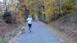 Vanmorgen hebben we ruim 19 km gelopen richting Winterberg. S. heeft niet zoveel zin om te fietsen en daarom gaan we eens met de poles op pad. Vanmorgen stond in het hotelkrantje dat je stokken kunt lenen bij de balie dus dat gaan we doen. Ik bracht mijn eigen stokken al mee dus 1 paar is genoeg. Het zijn verstelbare stokken dus we kunnen mooi eens kijken welke hoogte geschikt is voor S. We denken 120 cm omdat we dat al eerder probeerden.
