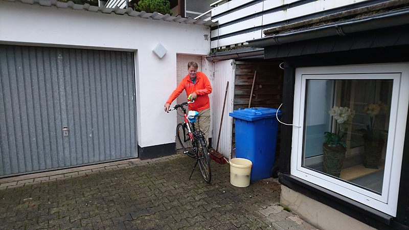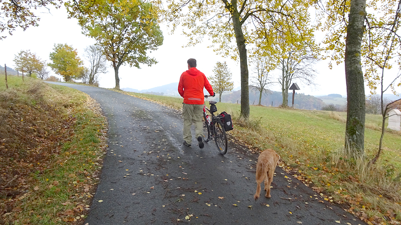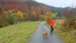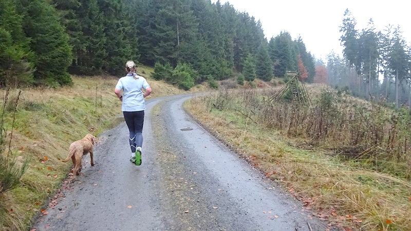 Vandaag ligt er weer meer sneeuw dan gisteren. Het is prachtig en we genieten volop. Woef trouwens ook want die vindt de sneeuw wel leuk! Het lijkt nog wel OK qua fietsen en hardlopen dus we gaan vol goede moed en zin op pad voor een nieuw rondje. Tot onze verrassing hebben we ontdekt dat het naar Winterberg maar 12 km is door het bos. Dat is met de auto een stuk verder. Toen we eens op de kaart keken, ontdekten we dat we de route ook iets konden inkorten. We hadden al gehoord dat de weg naar Winterberg aardig op en neer zou lopen qua hoogteprofiel dus we doen het even rustig aan en kiezen voor een iets kortere route vandaag. We hebben dus een route gemaakt van 18 a 19 km en dat lijkt ons prima voor deze ochtend met deze sneeuw. De route staat in de navigatie op de fiets dus we kunnen op pad zonder al teveel op de kaart te hoeven kijken en de weg zou een redelijk groot pad moeten zijn dus dat leek allemaal veelbelovend. Ik ga eerst even de voetjes van woef insmeren vanwege de sneeuw en S. gaat de fiets pakken.