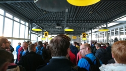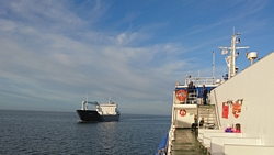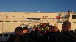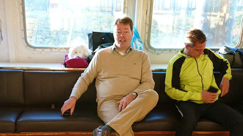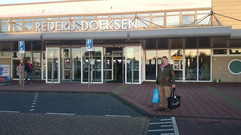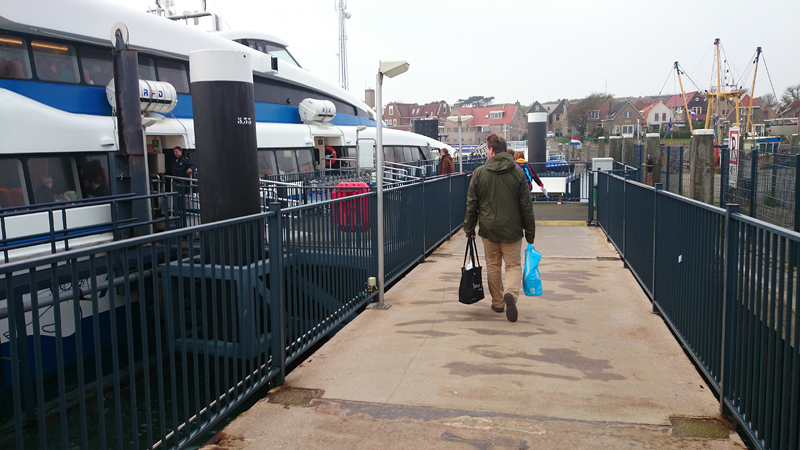 Ofschoon de bedden goed zijn (alleen raar opgemaakt waardoor ik met mijn voeten verstrikt raakte in de dekbed hoes), sliep ik niet lekker. Gesnurk en dat dekbed…. Maar uiteindelijk waren we weer gezond en wel op tijd wakker. We hadden even verschil van inzicht over ontbijt, maar keurig op tijd reden we richting Harlingen voor de boot die om 8.45 zou vertrekken. De overtocht was – net zoals vorig jaar – saai en langdradig. De overtocht duurt twee uur met de veerboot en er is verder niks te doen, anders dan mensen kijken en zitten. Niet echt de beste voorbereiding voor een loopje ook qua been. Ik besluit overigens om me op de boot nog even om te kleden en verwissel mijn lange tight voor een korte tight gezien het weer.