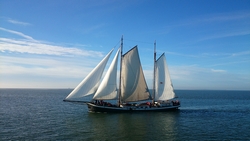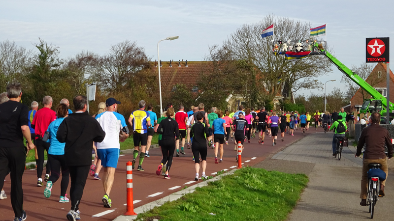 Uiteindelijk klinkt het startschot. Iedereen scheurt weg. Ik probeer mijn eigen tempo te vinden maar dat valt nog niet eens mee. We lopen Midsland uit op weg naar de oostkant. langs het water komt een bebop over. Ik herken het silhouet en het geluid. Niet die van ons want we hebben niks meegenomen. Overigens mag het natuurlijk niet over een mensenmassa maar het levert vast hele leuke beelden op zo met de zee als achtergrond.