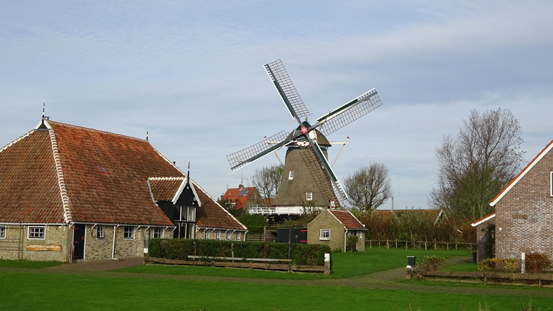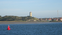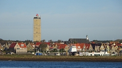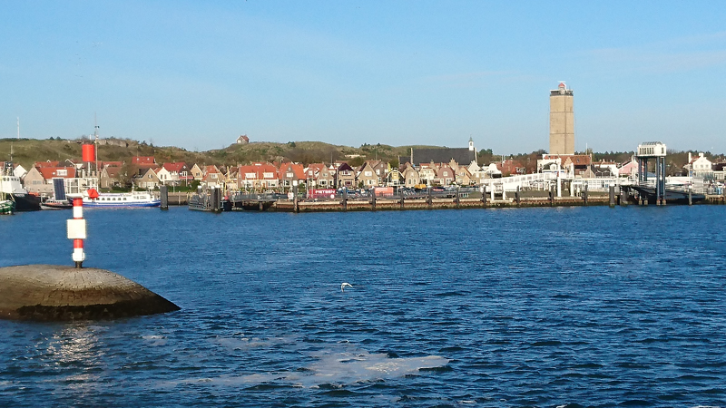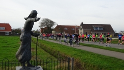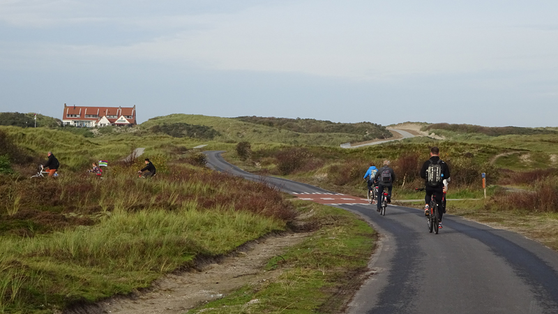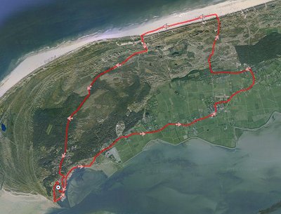 Nog een klein stukje dan maar en daar komt het dorp alweer in zicht. Weer even over de verharde weg. S. staat nog rechts vlak voor het dorp maar ik mis hem, hoor hem alleen. Ik zal hem dus pas weer zien na de finish. Nog even wat draaitjes en stukjes door de straatjes van West Terschelling en dan is daar de finish al.