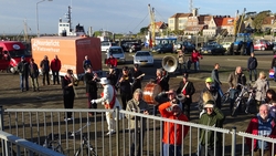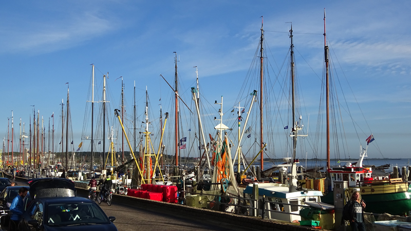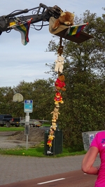 Maar ook aan de overtocht komt een eind en we zijn dan eindelijk op Terschelling. Daar speelt de band als vanouds. Dat is leuk. Overal mensen in renkleding natuurlijk! S. heeft weer een fiets gehuurd en gaat straks de fiets halen en bij de haven stallen voor later.