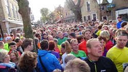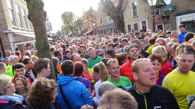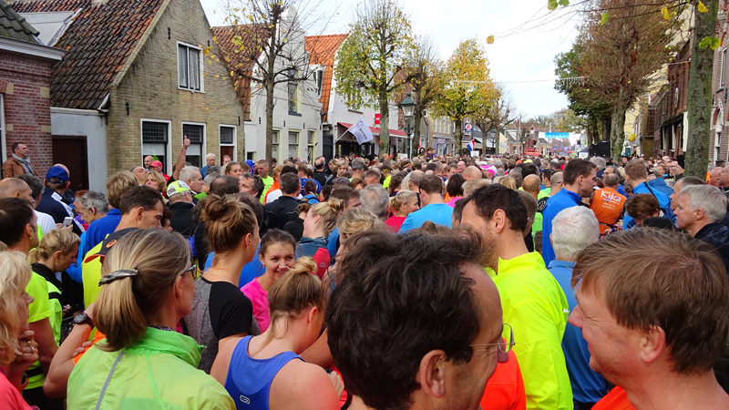 Maar rond 11.30 gaan we richting de startvakken omdat we weten dat het idioot druk was vorig jaar. Ook dit jaar weer. Al snel sta ik in een startvak dat drukker en drukker wordt. Je staat boven op elkaar en ik vind er niets aan. Ik denk aan mijn eerdere loopjes op Terschelling in alle stilte en rust. Ik denk aan de loopjes op Garderen waar we ook de hele dag in touw zijn maar op een ontspannende manier. Waarom sta ik hier eigenlijk?