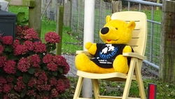 S. gaat F1 kijken op de televisie en ik ga luieren in het zonnetje. Wafje slaapt op het gras naast haar nieuwe toy die we haalden bij Pets at Home toen we voer gingen halen voor haar in Edinburgh. Ik ontdekte inmiddels een gigantische blaar op mijn rechtervoet en totaal open geschuurde billen van mijn renrokje. Dat gebeurde nog niet eerder en het is erg vervelend. Alsof ik een ultra heb gelopen!