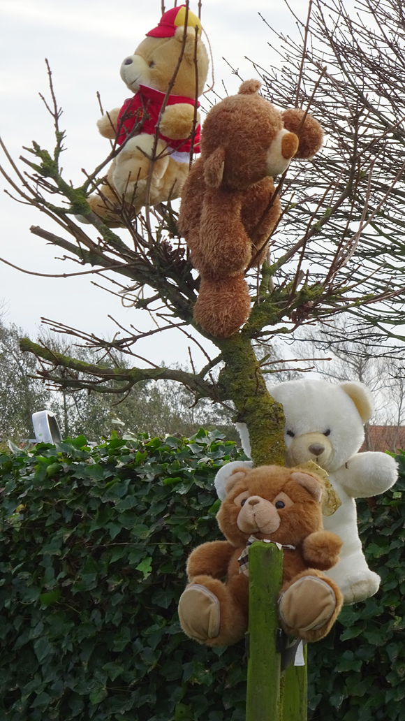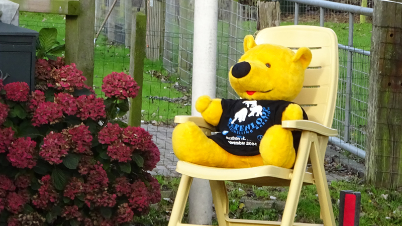 Maar weer op gang komen over de Longway is dan weer iets anders. Vreemd genoeg begon de dag met prachtig weer en trok het helemaal dicht toen ik op het strand liep. Ik heb best koude benen gekregen van dat stukje in de wind. Het waait nog steeds een beetje maar niet erg en ik hobbel gewoon voort. Het stukje is wel vrij saai moet ik bekennen. Ligt het aan mij? Normaal is het natuurlijk heel mooi hier (weet ik) maar nu ‘moet’ ik ineens lopen en dan loopt anders. De eerste keer dat ik deze loop liep, vond ik het heel erg leuk en spannend. Overal beren, leuke sfeer, muziek bandje bij Paal 8, mooie opera muziek in het bos. Nu is dat er allemaal niet meer. Er staan mensen op verschillende punten en iedereen is enthousiast maar het doet me niets. Ik voel me eerder ‘te kijk’ lopen.