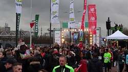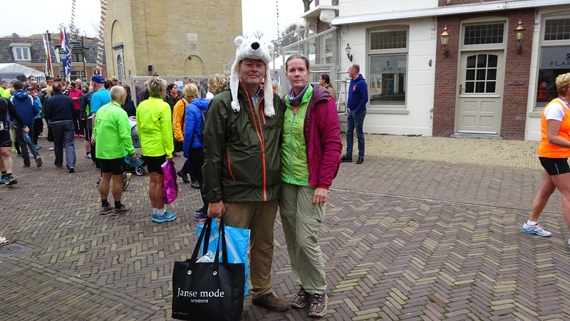 Het is echt ongelooflijk maar ik heb dus nu al bijna 3 weken niet gelopen en vandaag is het zo ver. De marathon! Inmiddels hebben we ons kapot gewerkt om het huis klaar te krijgen maar het is gelukt. De eerste gasten zijn gisteren gekomen. Dat voelt natuurlijk ook heel gek want het is allemaal nieuw voor ons. We hebben 2 nachten doorgehaald bijna om alles rond te krijgen en donderdag heeft Chris (die de badkamer installeerde) enorm veel klussen in no time gedaan waar wij nog een week voor nodig gehad zouden hebben denk ik. Wat een raar idee maar er draait dus echt een vakantiehuis waar heuse gasten in zitten. Bizar! Maar dan is het nu opeens tijd om een marathon te lopen. Nou ja een stukje dan. Ik hoop dat ik 10 km mee kan rennen dat lijkt me wel genoeg. Gisteren zijn Chris en Richard gekomen uit de UK. We hebben rustig aan gedaan in de avond zodat ze zich kon voorbereiden. Vanmorgen start de dag dus ook met haar voorbereiding met pillen en poeders voor optimale prestatie. Ik voel me raar want ik liep al eeuwen niet(s) en heb geen enkele voorbereiding. Hoe ver zou ik komen eigenlijk? Het weer is goed. 10 graden, zonnig en geen wind. Ideaal dus op zich om te lopen zeker zonder wind want langs het water is het anders echt vreselijk. We vertrekken op tijd en gelukkig weten we waar we kunnen parkeren en ook vandaag lukt dat goed. Daarna even plassen bij het ziekenhuis en ook dat gaat prima. Ik moet nog even het startnummer voor ene Peter ophalen. Ik loop op zijn nummer en dat kostte weinig. Ik had echt geen zin om 80 euro uit te geven voor een stukje marathon.