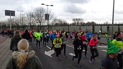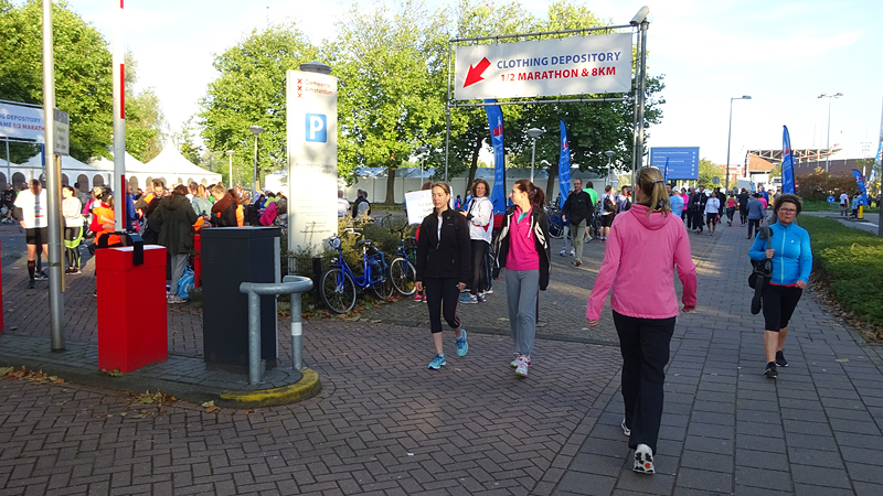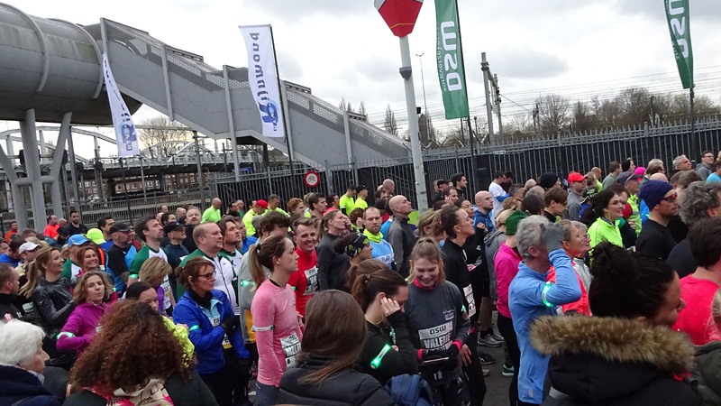Zo gezegd zo gedaan en tot onze verrassing kunnen we wederom daar parkeren en zijn we daarna in no time bij de start aan London Road. Ik kan nog even van een vieze dixie gebruik maken voordat de rijen enorm worden en daarna staan we in het startvak wat te wachten. Aanvankelijk is het nog best fris en bewolkt. Dat komt dus prima uit en ik ben blij. Ik heb zelfs een jackje aan tijdens het wachten!