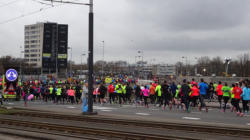 Inmiddels gaat de zon ineens schijnen. Weg zijn de wolken. Ik besluit zelfs tijdens het opschuiven naar de start alsnog mijn petje op te zetten om de zon een beetje uit mijn gezicht te houden. Ik ga over de startmatten en zorg ervoor dat ik niet te snel start. Ik merk al direct dat ik zware poten heb maar ik loop gewoon door.