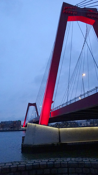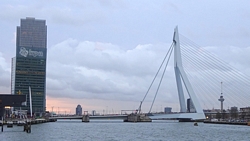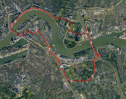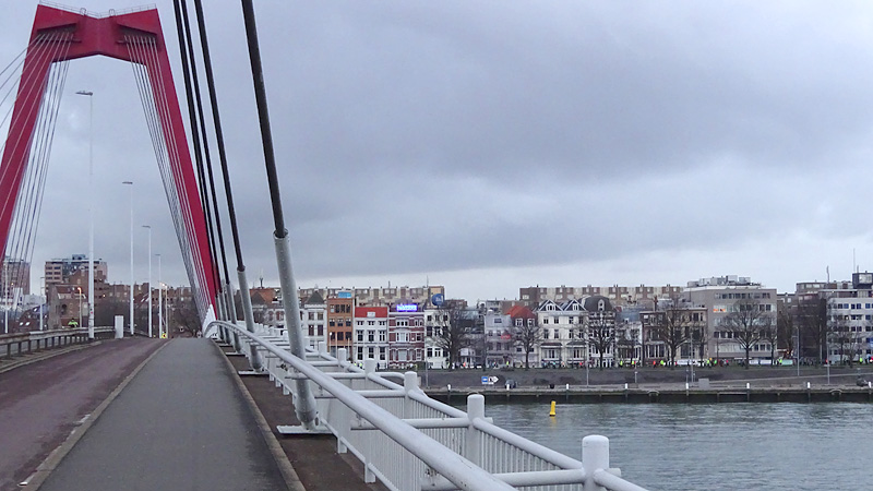 Inmiddels komen we al dichterbij de Erasmusbrug. Dat zal een klein beetje klimmen maar ik heb geen idee meer of ik dat ook echt vond. Nee dus en al snel ben ik de brug over en slaan we weer rechtsaf.