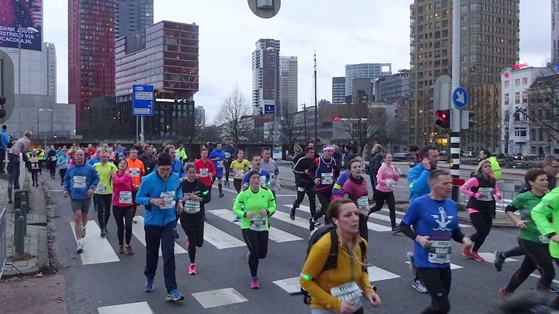 Vanmiddag is de Bruggenloop dan. In 2014 liep ik die voor het laatst en mijn startbewijs voor 2015 verkocht ik. Ik vond het toen zo teleurstellend in 2014 dat je de finishmatten niet over kon vanwege de drukte dat het voor mij de laatste keer zou zijn. Dit jaar lopen er geen 11.000 mensen mee maar zelfs 12.000 en ik ben dus benieuwd of het dit jaar wel goed gaat bij de finish. Waarom ik me dan toch inschreef? Omdat ik dit jaar op de HM (Edinburgh) en in Amsterdam (8km) een PR liep door de andere manier van trainen. Daarom wilde ik graag kijken of me dat op de 15K ook zou lukken en aangezien je dan wel eenzelfde parcours moet gebruiken daarvoor, werd het dus voor de 5e keer de Bruggenloop. Geen loop met een goed track record voor mij. In 2011 ging het goed en liep ik mijn PR. Dat verbeterde ik nooit meer, het was elke keer een slechte loop. In 2014 ging het op zich goed, ik liep continu op goede hartslag maar ik kon alleen niet over de finish matten komen. Een beste tijd was het overigens ook niet, maar ik was wel tamelijk tevreden. In 2012 liep ik voor het eerst via RWR en in 2013 werkte de HS niet mee. Maar nu staan in principe alle lichten op groen. In Edinburgh liep ik iets sneller dan 6 min/km zoals ik al zo lang wilde op de HM, in Amsterdam liep ik op de halve afstand (8 km) iets sneller dan 5.30 min/km. Mijn streven om (iets sneller dan) 6 min/km te lopen op de 15K is dus niet een onhaalbaar plan ook al is het parcours niet erg prettig met de bruggen (oa de Brienenoordbrug) en de wind. Maar het moet lukken omdat ik nu door ervaring weet dat je zelfs in de laatste kilometers nog wat ‘goed’ kunt maken als je nog even kunt en wilt versnellen. Elke seconde ‘telt’ dan ineens op de eindtijd.