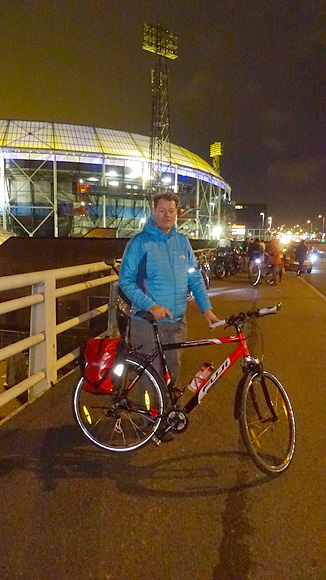 Eerst even langs McDonalds voor een sanitaire stop en daarna lopen we door naar het Feyenoord stadion waar de start zal zijn.