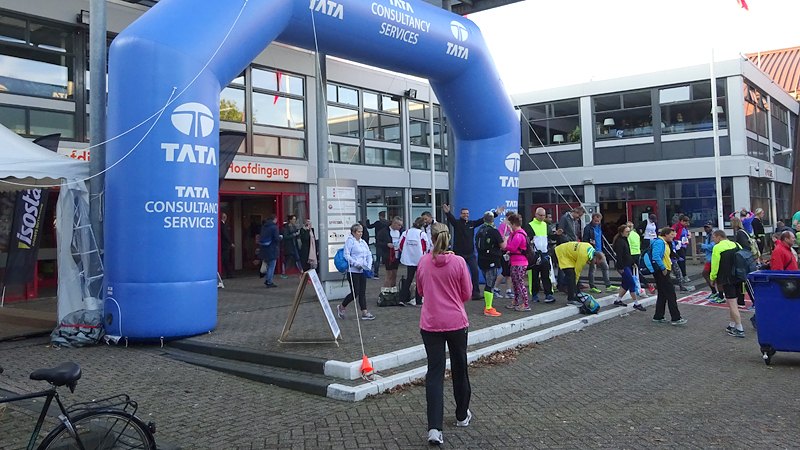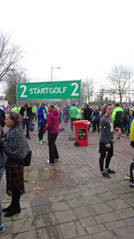 Daarna ga ik mijn buitenkleding uittrekken en eens bedenken of het goed is wat ik draag voor de race. Ik speld mijn nummer op, prop mijn autosleutel in het zakje van de tight en ben klaar. Hoewel. Dat shirt… Misschien een beetje warm voor een snelle run? Hoewel het natuurlijk maar 6 graden is, staat er weinig wind dus ik besluit toch om het shirt aan te trekken dat ik nog ben gaan halen voordat ik vertrok. Dat is een dun lange mouwen shirt en dat lijkt me toch beter. De start is toch een kilometer nog lopen, dus ik kan lekker opwarmen!