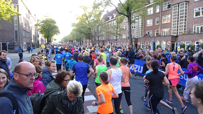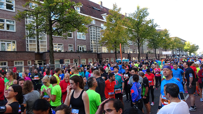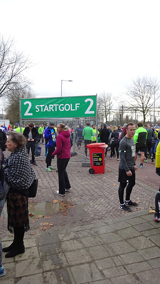 Omdat we vrij laat zijn, lopen we meteen door naar het tweede startvak. Dit jaar zijn er drie startvakken en ook drie startgolven met 10 minuten pauze zodat het bij de finish goed zou moeten verlopen. In 2014 was dit nog drama en kon ik de finish matten niet eens bereiken.