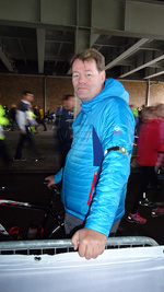 We worden vlakbij de nieuwe start afgezet. De route is vernieuwd en ook de start is ergens anders. Ik had Douglas een plaatje gestuurd gisteren van de start en hij weet natuurlijk als geen ander waar dat is en hoe je daar moet komen en met de taxi rijd je gewoon overal heen zonder gedoe.