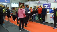 Ik ga gauw naar de auto en geef woef te eten. Daarna ga ik terug naar de toiletruimte om me om te kleden in droge kleding voor het tweede deel. Er komen nog steeds mensen binnen (ik laat er meer dan 200 achter me)! Ik zie bij de finish de dame met de Chariot kinderbuggy en ik praat even met haar en probeer de kar. Ik zal binnenkort toch met de doggyride op stap moeten denk ik en we hebben daarvoor de juiste jogger stroller kit nodig. Maar ik twijfelde over de lengte van de armsteun maar de Chariot lijkt net zo lang en dat gaat prima. Dat zal dus wel goed komen neem ik aan. Voorlopig zal ik met de doggyride gaan trainen, eerst zonder woef en als het goed gaat, ook met haar erin.