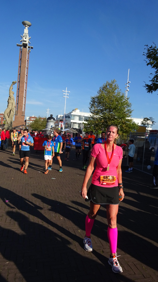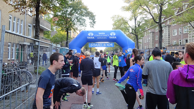De start zal om 8 uur zijn en ik praat nog even met Nederlanders die ook gaan lopen en bij mij in het startvak staan. Hoe zou het bij mij gaan vandaag? Ga ik proberen mijn tijd van vorig jaar te verbeteren? Het gaat hier altijd wel tamelijk goed met een mooie tijd vorig jaar.