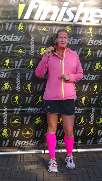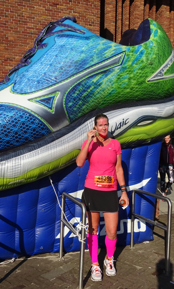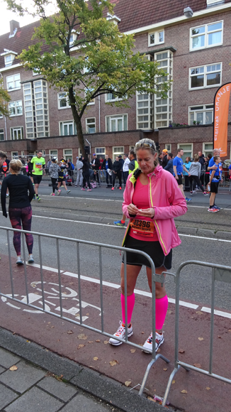 Daarna kleed ik me snel om en lopen we weer van het finish terrein af richting de fiets en daarna richting de auto. Toen ik me had omgekleed had ik ineens ontzettend last van mijn linker voet. Geen idee wat het was maar ik heb even het extra compressie sokje uitgedaan en op blote voeten gestaan. Misschien toch geen fijne schoenen. In ieder geval een schoen waar ik 5 maanden geleden voor het laatst op gelopen heb. Ook allemaal niet handig qua voorbereiding dus.