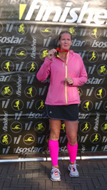 Ik vraag wat hij denkt dat ik liep…. 2.08? Nee…. 2.05.27 zelf geklokt. Ik kan het niet echt geloven maar dat is wat ik zag op mijn horloge. Ik ga me gauw omkleden in warme kleren en daarna lopen we terug naar de fiets.