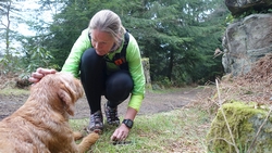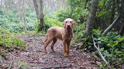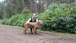 Als we thuis zijn gaan we meteen met woefje wandelen. Ze kon deze keer niet mee met Christine en de honden omdat ze loops is en zij twee mannetjes hebben. Maar ze is happy en gaat tevreden plassen en scharrelen. Voor mij ook wel even goed.
