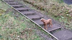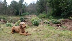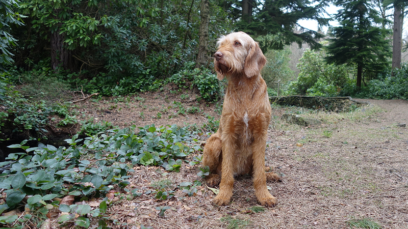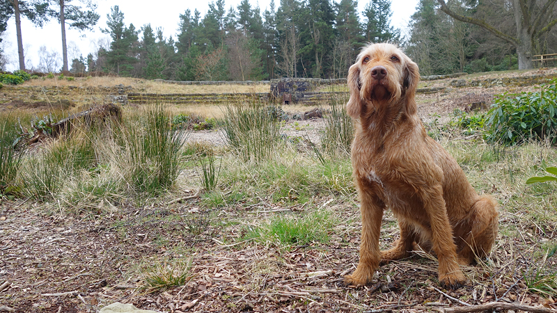 Uiteindelijk is er een uur verstreken sinds haar voedertijd en denk ik dat we wel op pad kunnen. Omdat ik best moe ben geworden, blijf ik op het estate en ga ik niet de moors in aan de overzijde. Hier op het estate kan ik net zo ver of kort lopen als ik wil en dat lijkt me geen gek plan.