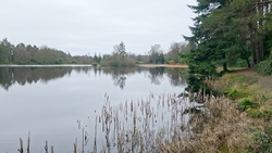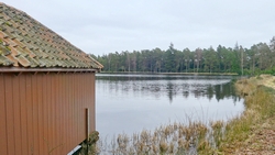 Ik loop deze keer maar aan een zijde van het meer. Vorig jaar liep ik een rondje er helemaal omheen maar nu heb ik al een andere route gezien. Ik blijf nu aan de kant van het boathouse en loop daarna rechtdoor het bos weer in. Ik weet dat ik met een omweg ook bij een droogstaand meer kan komen waar een heel mooi rietgedekt boathouse is. Daar wil ik nog wel even heen!