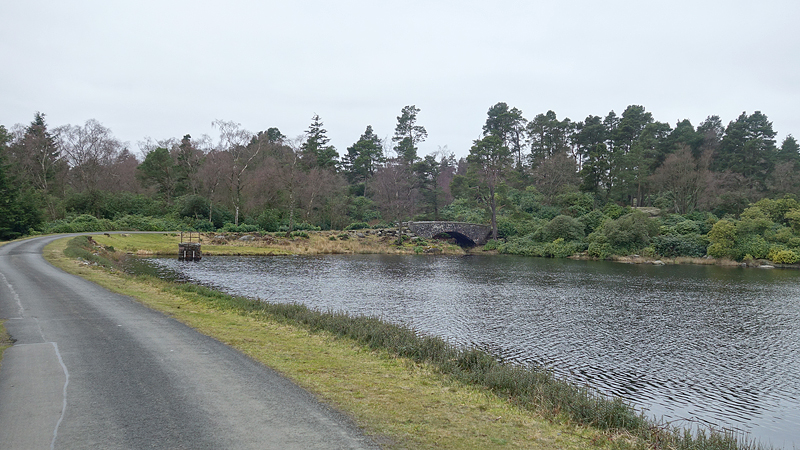 Daarna lopen we toch een klein stukje over de weg hoewel woef dat niet fijn lijkt te vinden. Ik loop nu een klein stukje over de estate drive waar ik vanmorgen met de race ook liep en ook in dezelfde richting. Wat een vervelend omhoog lopend stukje weg zeg. Ik ben verrast dat ik hier vanmorgen zo snel tegenop liep. Nu wandel ik dit stukje even want ik ben moe geworden blijkbaar en woef loopt ook al te sloffen. Het is wel mooi langs het water en straks over het bruggetje. Ik herinner me nog goed dat ik hier vanmorgen ook liep en dit is het laatste stukje van de stijgende weg.