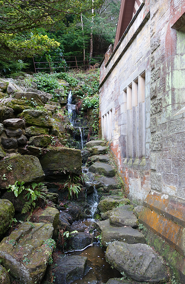 Nu zit het er bijna op. We lopen weer over de binnenplaats van het House en dan richting de parkeerplaats. Ik geniet nog even van het geluid van klaterend water dat naar beneden stroomt.