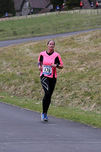 Op tijd ben ik bij de start en daar sta ik te wachten tussen 470 andere lopers. Volle bak dus want vorig jaar gingen er maar 300 mensen over de finish. De twijfel slaat weer toe. Wat doe ik hier eigenlijk? Ik ben al uren in de weer en heb nog geen meter serieus gelopen. In de tussentijd….. Het wordt 9.30 en de start is even uitgesteld. Ik weet niet wat er aan de hand is maar uiteindelijk klinkt dan toch het startsein. Ik mis aanvankelijk de startmat en druk te snel op de laptoets maar even later loop ik alsnog over de mat en start de tijd. En dan begint de afdaling. Lastig, want ik weet dat je je meteen te pletter kunt lopen als het te hard gaat…. Maar dit loopt wel erg makkelijk, en dat weet ik omdat ik nog op 2/4 aan het ademen ben. Voordat ik er erg in heb, zit de eerste kilometer er al weer op. Ik zie nog net hoe snel dat ging. Ik ga er maar van uit dat het goed gedoseerd is zo en loop rustig verder. Ik loop goed op tempo maar vind het lastig in te schatten hoe snel ik kan gaan zonder straks in de problemen te komen bij de klim. We lopen over het estate onder het poort van het house door. Deden we dat vorig jaar ook? Ik had het idee dat we er toen omheen liepen. Dit is leuk! Ik zie uberhaupt meer dan vorig jaar. Loop ik te langzaam dan? Ik doe echt mijn best om er een serieuze run van te maken en goed door te lopen. Misschien loopt het gewoon goed. Om me heen hoor ik veel gehijg. Ongelooflijk…. Ik zie nog steeds lopers in alle soorten en maten voorbij komen en ook haal ik lopers in.