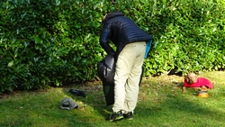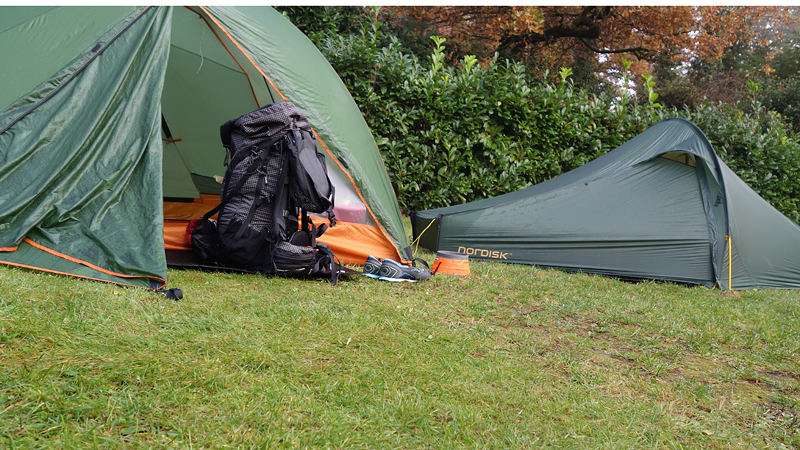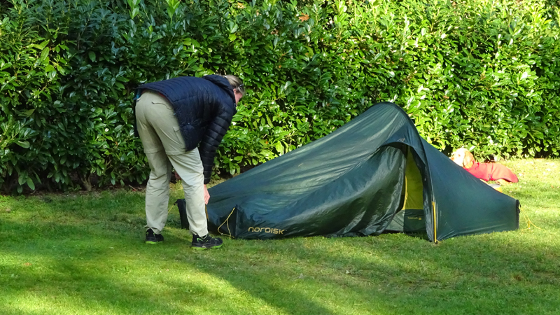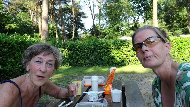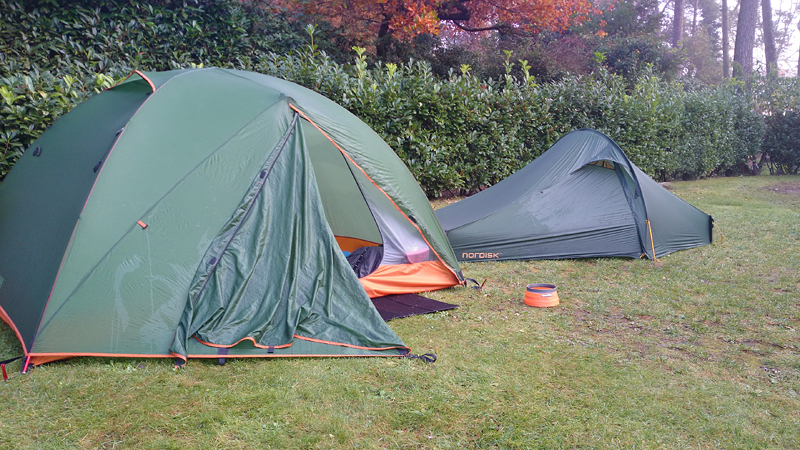 Ik vind dat echt wel wat hebben zo lekker buiten. Het weer is goed. Er is totaal geen zon en dat is echt jammer, maar het is niet vochtig (de tent is ook helemaal droog) en er is nauwelijks wind. Zo lekker zitten met de tent open, luisteren naar de vogels en een beetje om je heen kijken is toch wel bijzonder. Omdat er verder niemand is, lijkt het een beetje op wild kamperen natuurlijk en dat is juist wat ik leuk vind. Ik zou het vreselijk vinden als er voor mijn neus ook nog andere tenten zouden staan, kinderen zouden rondrennen of honden zouden blaffen. Dit is ideaal!