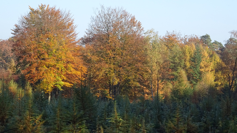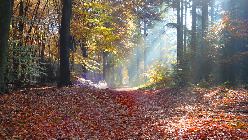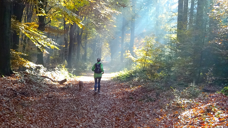 Maar niet getreurd. Ik moet nu eigenlijk het bos in, maar ik kan ook over de rustige weg gaan lopen. Ik twijfel even maar kies toch voor de route die ik getekend heb. Want ergens moet dat kerkje liggen ook al zie ik er niets van. Ik sla het bospad dus in en zie even later tot mijn verrassing inderdaad het kerkje. Wat een mooie plek hier zo midden in het bos! Dat is wel verrassend eigenlijk.
