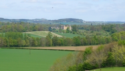 Van het bos weer over velden, langs schapen en koeien die gelukkig deze keer achter een hek staan. Het is van alles wat met overal mooie vergezichten en doorkijkjes. Ik geniet volop al is het jammer dat ik soms even op de kaart moet kijken.