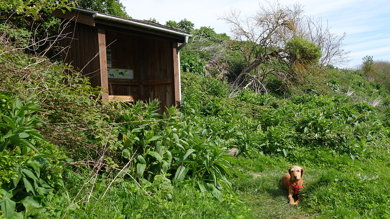 Ik geef waf wat eten en moet dus noodgedwongen zeker een half uur wachten. Ik ga niet zitten want het is koud en het waait en ik blijf maar een beetje om een boom heen lopen om uit de wind te blijven. Dat is het enige dat echt jammer is op deze route. Ik kan niet lekker even een uurtje in de zon gaan zitten op mijn zitmatje en dat is jammer.