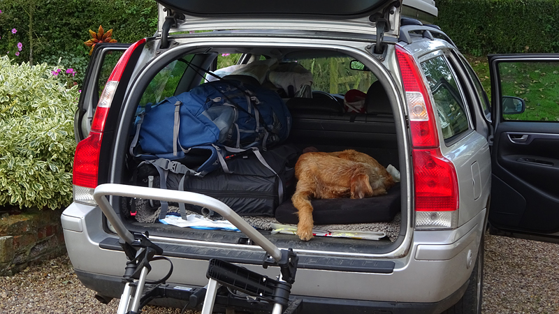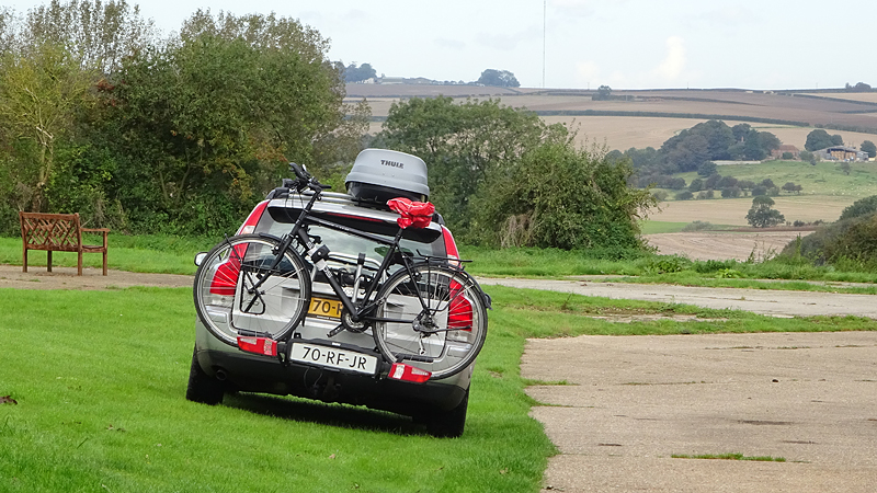 Op 38 km van de bestemming stoppen we even voor een plasje en om te tanken en dat doen we nogmaals op 11 km voor de bestemming. Daarna rijden we om 8 uur het terrein al op en rijden door naar het begin van het weiland en parkeren de auto. Dan begint het wachten want we zijn natuurlik veel te vroeg voor de start. Rond 9 uur zullen we pas richting startvak gaan. Het weer is aardig, geen mist en niet al teveel wind. Misschien iets te warm voor het fijne maar dat hoort er allemaal bij. Behalve vorig jaar was het iedere keer enorm warm. S. gaat even op het terrein kijken en ik blijf bij waf die even voorin zit.