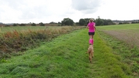 Om 9.30 klinkt het startschot voor de elite lopers in de vakken voor me. Daarna gaan we in waves van start voor onze eigen run. S. vertrekt inmiddels terug naar de auto omdat hij de doggyride nog moet opbouwen, woef erin moet doen en op pad moet voor het stukje fietsen naar het punt waar hij me gaat zien. Ik heb niets bij me vandaag, alleen wat dextro in mijn zakjes en een tissue. Onderweg hebben ze hier waterzakjes die heel goed vast te houden zijn en die zal ik dus onderweg ook aannemen, plus water van S. en eventueel een spons.