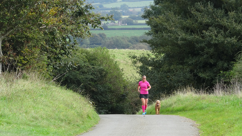 Nu komen er allerlei stukken met keerpunten en delen waar je dus een stroom lopers ook de andere kant op ziet gaan. De eerste loper zag ik al voorbij racen op weg naar de finish. Mooi gezicht als je zo iemand ziet lopen. Dat is pas echt hardlopen natuurlijk. Ik doe maar een beetje joggen als ik daar naar kijk. Maar ik zeg tegen mezelf dat dit mijn niveau is en dat ik het ook best goed doe voor mijn doen. ‘Ik ben sterk en ik ben fit’. Ik herhaal mijn mantra nog maar eens. Het valt me niet mee deze run maar ik vind het op zich ook leuk om te proberen mijn plan te volgen, dus het tempo dat ik wil, mooi continu lopen en dan ook nog met een gezonde hartslag. Zou dat lukken? Ondanks de route? Ik ga er echt mijn best voor doen en laat me door niets ontmoedigen. Noch de stop bij het castle, noch de snelle lopers die me inmiddels links voorbij racen de andere kant weer op. Ik ben wat tijd kwijt door dat gedoe bij het castle, maar daar kan ik zelf niets aan veranderen dus dat is dan maar zo. Verder geen excuus om dan te vertragen of iets dergelijks.