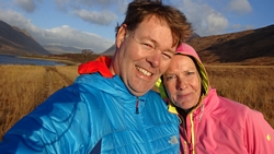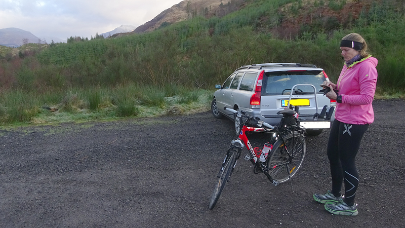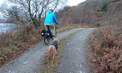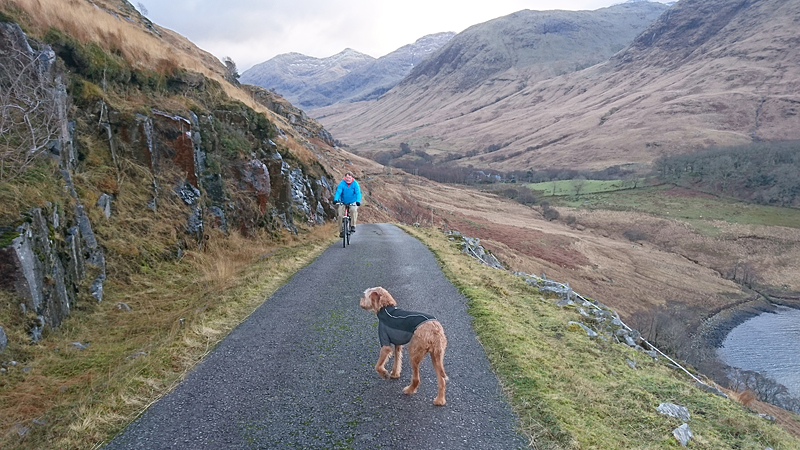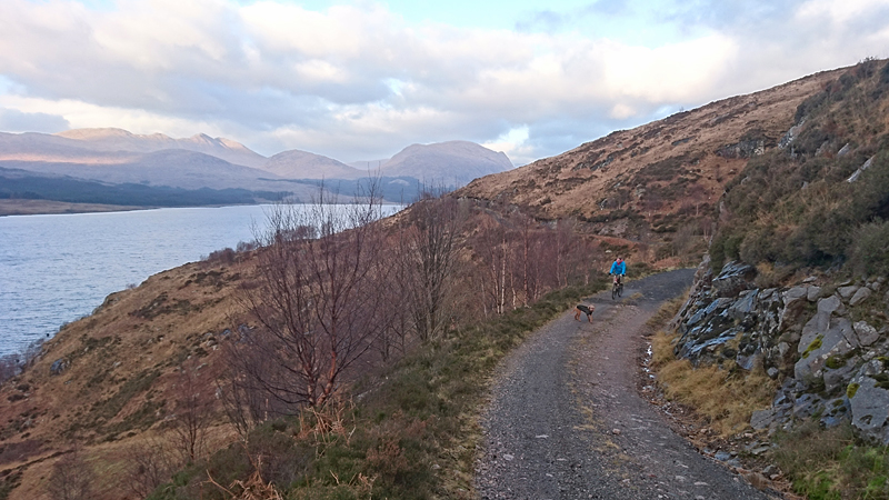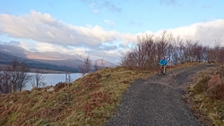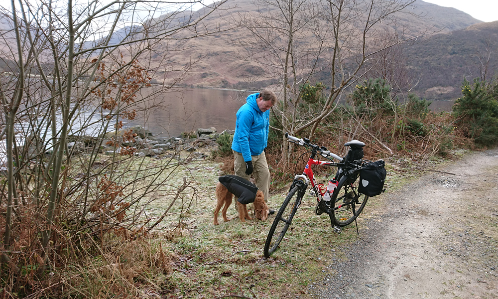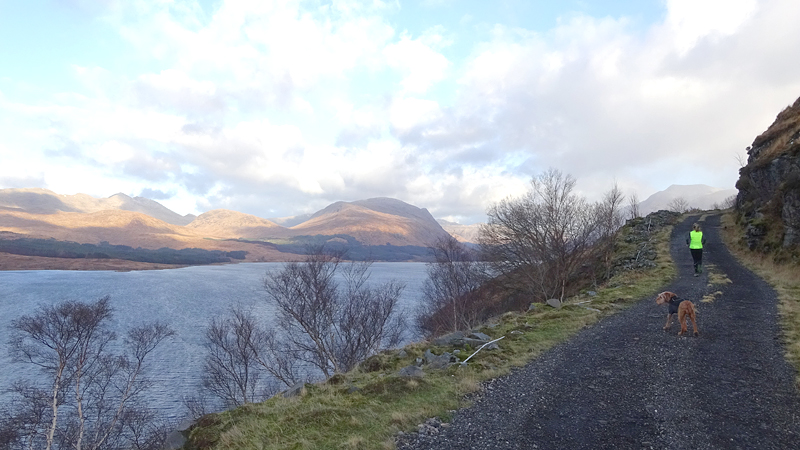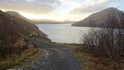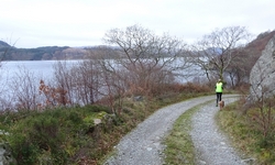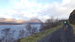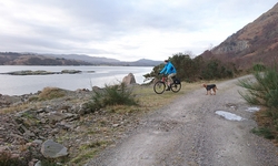 Daarna gaan we weer gauw verder met onze run. Ik geniet met volle teugen van het meer en de stilte. Ook de schone lucht is heerlijk. Dat wordt straks dus weer afkicken van de gore Rijnmond shitzooi. De uitzichten zijn geweldig. Gelukkig doet S. het ook prima op de fiets maar het valt niet echt mee. Af en toe moet hij toch even afstappen.