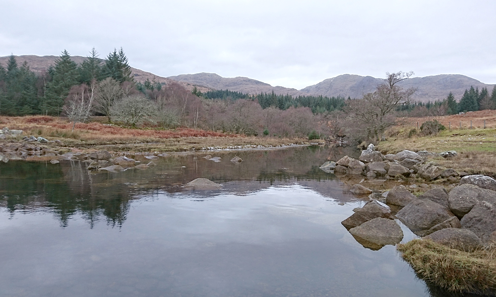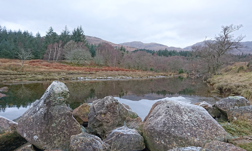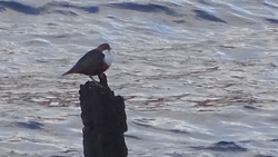 Al snel hobbelen we tussen de bomen door en zien links van ons het meer liggen. Het probleem met dit rondje is dat op zoveel plekken het uitzicht fraai is. Maar omdat we hier al vaker hebben gelopen, maken we niet meer zo idioot veel foto’s als in eerdere jaren. Mooi blijft het! Op een gegeven moment zie ik weer een Dipper vliegen. Ik kan wel Dipper gids worden want om een of andere reden zie ik die beestjes elke keer terwijl ze in principe niet echt opvallend zijn. We blijven even staan kijken en genieten van zijn gehip op een paaltje. Deze keer wordt de foto nog redelijk herkenbaar op deze enorme afstand dus dat is leuk.