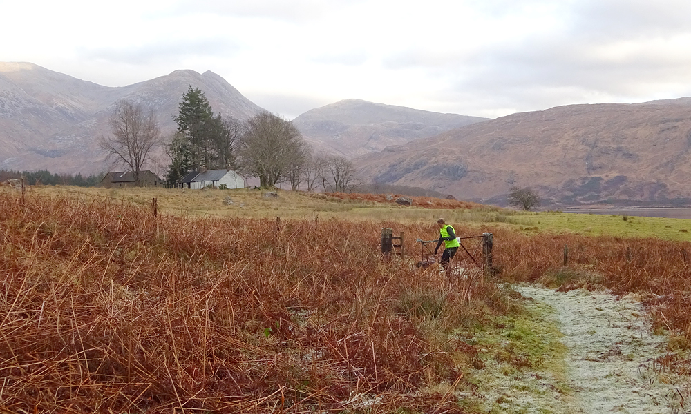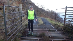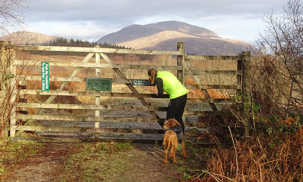 Er zijn gelukkig niet veel hekken op deze route en hier gaat alles gelukkig gewoon open. Ik vergeet alleen even dat dit ene hek totaal in het water staat. Op de terugweg sta ik dus ineens tot mijn enkels in het water. Beetje jammer maar mijn Merino outdoor sokken doen het gelukkig prima.