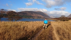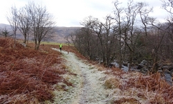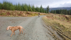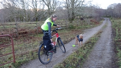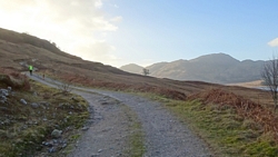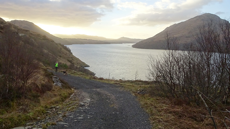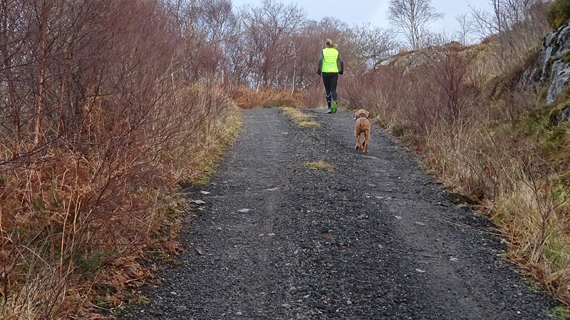 Nu zal de zon weer snel achter de heuvel zakken en dan wordt het op de foto’s sombertjes hoewel het nog steeds goed weer is. We gaan beginnen aan de terugweg. Die is nu bijna 11 km nog dus even bikkelen. Het begin gaat weer omhoog… waar we net zo lekker even naar beneden konden rennen, gaan we nu weer omhoog natuurlijk.