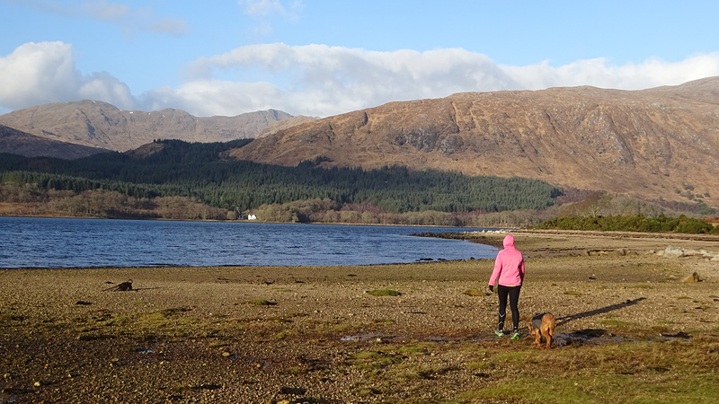 Omdat het mooi weer is, gaan we vandaag richting Inverawe om een stukje langs Loch Etive te lopen. Dat vinden we altijd erg mooi hoewel het niet echt een makkelijk rondje is om te lopen. Maar vol goede moed en zin gaan we op pad.
