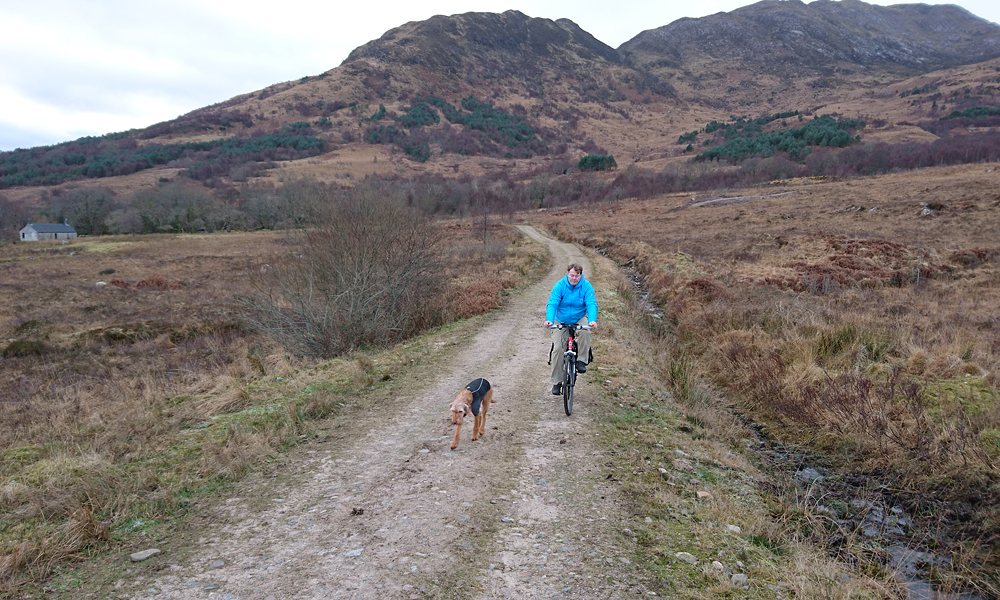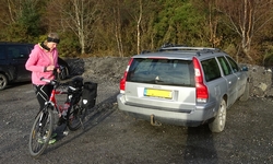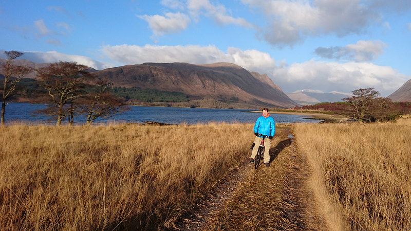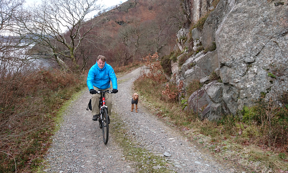 Verder gaat onze run. De uitzichten zijn nog steeds erg mooi. S. ploetert moedig voort op zijn fietsje. Nog geen lekke banden dit jaar gelukkig ondanks alle harde rotsen en stenen. Slechts eenmaal een gebroken spaak dus dat valt allemaal mee.