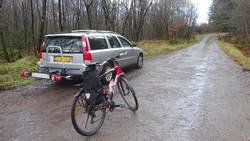 Het laatste stukje rijdt S. naar beneden en hij gaat alvast de fiets weer opruimen. Ik wandel nog even uit en samen doen we nog even een cool down in het bos. Na 24 km zit de ronde er weer op. Prachtige middag gehad met mooie uitzichten.
