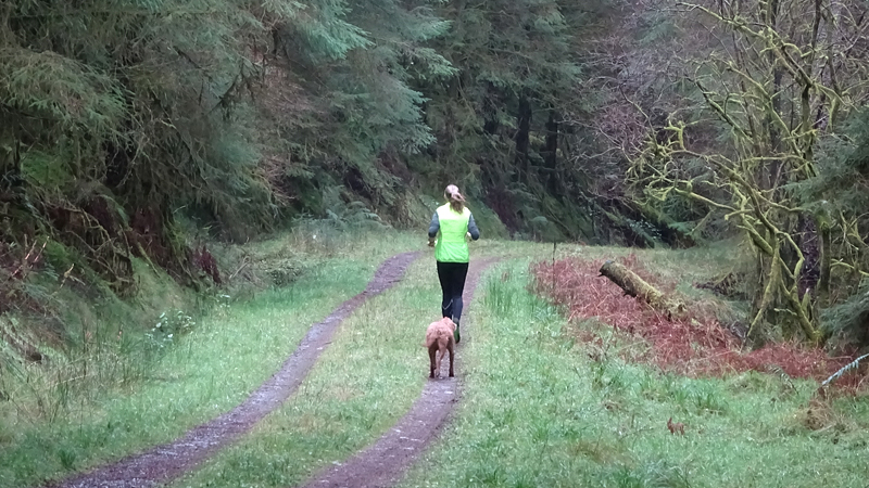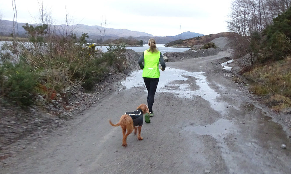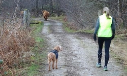 De terugweg voelt altijd wat korter. Dat komt deels door de herkenbare punten onderweg. Eerst weer naar de boerderij met de blafferds, daarna naar de paardjes.