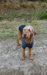We maken hier natuurlijk veel te veel foto’s maar op zo’n mooie dag met dit licht is het een fantastische plek. Ik zou nog wel even verder willen lopen maar S. zegt ‘het word vast niet mooier verderop’. Ik ben meer de jonge onderzoeker geloof ik en nieuwsgierig hoe het er acter de volgende bocht uit zal zien. Met dit lage water een mooie kans om te ontdekken. Maar we gaan dan maar terug. We moeten immers nog een stukje teruglopen over een vrij lastig parcours…. We gaan dus terug naar het eerste strandje met het piertje dat nu veel meer in het licht ligt. Prachtig! Daarna beginnen we weer aan de terugweg. Inmiddels het mooie gouden licht waar we vorig jaar ook zo van genoten maar toen zagen we dat al op de heenweg naar het strandje. Nu dus pad op de terugweg. Ik maak nog wel een foto van woefje in het gouden licht maar we vergeten een foto te maken van waf en mij in dit licht.