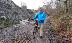 Na het open stuk is het uitzicht geweldig. Vanaf hier is het nog maar een stukje naar het piertje. Onderweg testen we de nieuwe garmin edge 810 en die gaf wederom tweemaal een storing. Al twee keer viel het apparaat uit dus dat is een beetje teleurstellend. Dat gepiel kost dus ook even tijd maar we weten dat een mogelijke oplossing een downgrade is naar software versie 5.00 dus we zijn nog niet wanhopig. Vervelend is het wel. Gelukkig weet S. door de uitval niet precies hoe ver we al gegaan zijn en hoe ver het allemaal zal zijn. Hij denkt dat we op pad zijn voor een 16 km rondje terwijl het toch echt 24 km zal zijn….