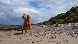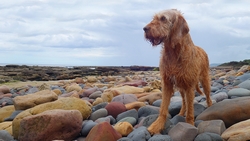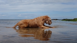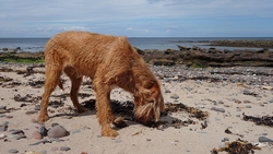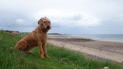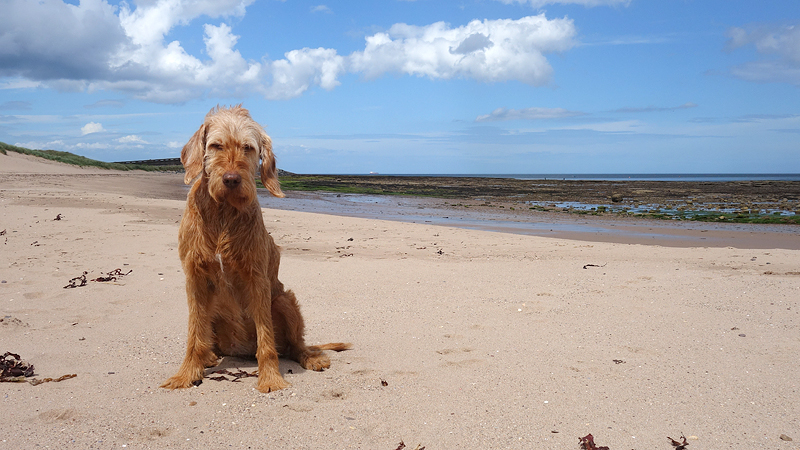 Ik neem een ijsje en raak weer aan de praat met twee mensen die wafje helemaal geweldig vinden. Later maken ze nog een foto van mij en woef en samen lopen we weer naar het strand waar woef nog eenmaal gaat badderen. Ik luister ondertussen naar de zeehonden die vanaf een rots aan het huilen zijn.