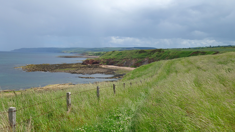We schieten best lekker op eigenlijk. De route van St Abbs naar Eyemouth is maar 6 km dus heen en weer is maar 12 km. Als wafje het goed doet, kunnen we vanaf St Abbs straks een stukje verder de route vervolgen richting St Abbs head. Ik heb alleen geen idee of zij (en ik) dat kan. Eerst maar eens Eyemouth halen! Het gaat allemaal niet snel door het badderen, het genieten van het uitzicht en het foto’s maken. Maar waar ik loop, kan ik ook wel goed doorlopen want de paden zijn eigenlijk prima. Dat valt me echt enorm mee want een deel van de John Muir Link is gewoon bijna niet beloopbaar.