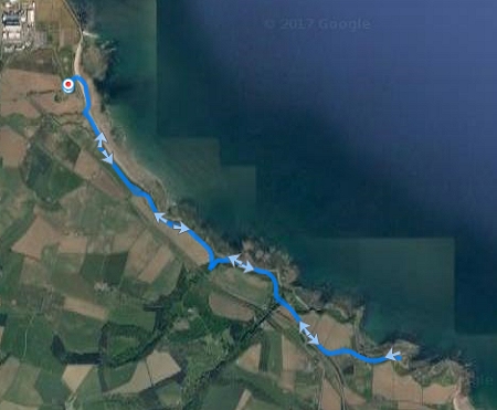 Ik besloot de Coastal Route dus wel te gaan doen maar in stukjes opgedeeld. Als eerste etappe van de coastal route koos ik voor het stukje st abbs naar Eyemouth en terug. Dat zou mooi moeten zijn en al zwaar genoeg denk ik met de hoogteverschillen. De hele route loopt overigens vanaf de Cove tot Berwick upon Tweed. Dat is niet ver, namelijk 50 km en vandaar dat ik dacht die in 2 dagen te doen met bepakking en wild campen onderweg. Nu dus in stukken en aangezien ik dan delen heen en weer loop (zoals vandaag) is het bijna tweemaal zo ver.